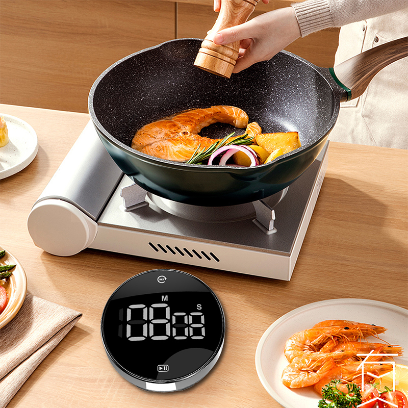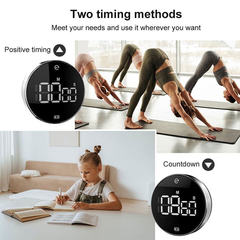 Functions: adjustable volume and mute humanized alarm, magnetic, hangable, supportable display, large screen display, rotary timing, 3-digit time timing, automatic power-saving design.