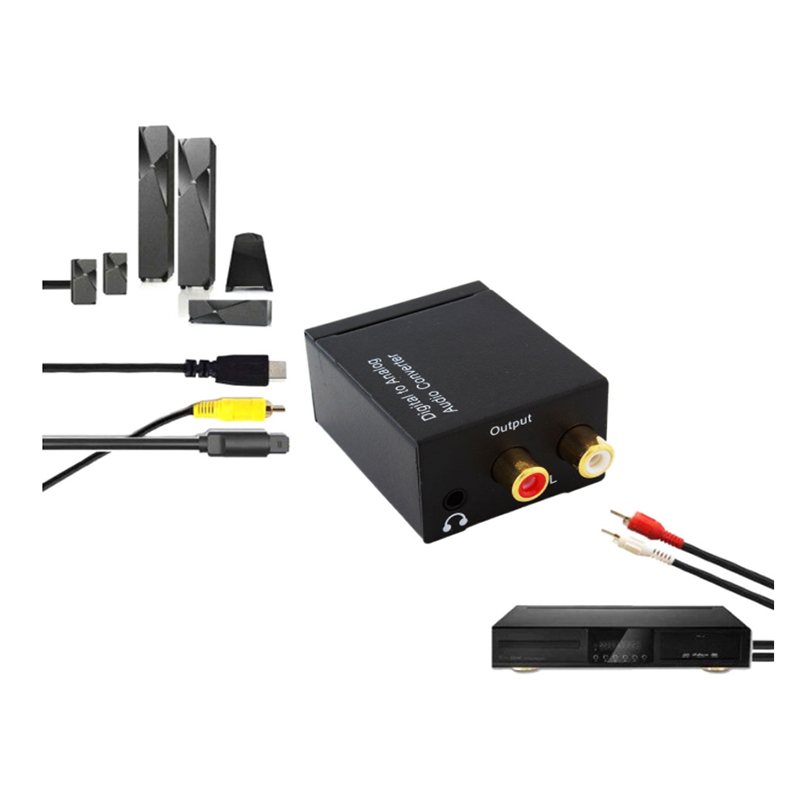 1) Convert coaxial cable or Toslink digital audio signal to analog L/R audio
